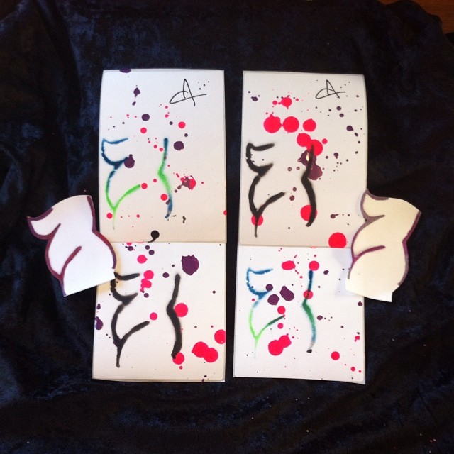 From splatters to silver and glitter - All stickers are hand sprayed and hand cut - each pack is unique and each sticker is one-of-a-kind. The Nosh Combo comes with 6 stickers of varied sizes and cuts - please contact for custom packs.