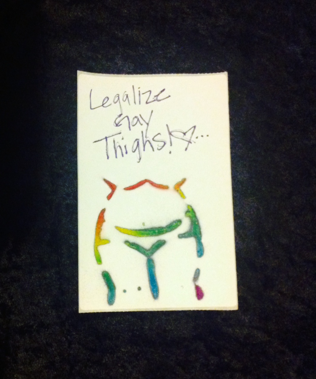 In honor of Pride Month - and just for the fun and fabulousness of it, really - I introduce to you the Legalize Gay Thighs stickers! Rainbow body - a little glitter and varied text colors - another fun way to celebrate LGBT Pride AND Thunder Thighs!!